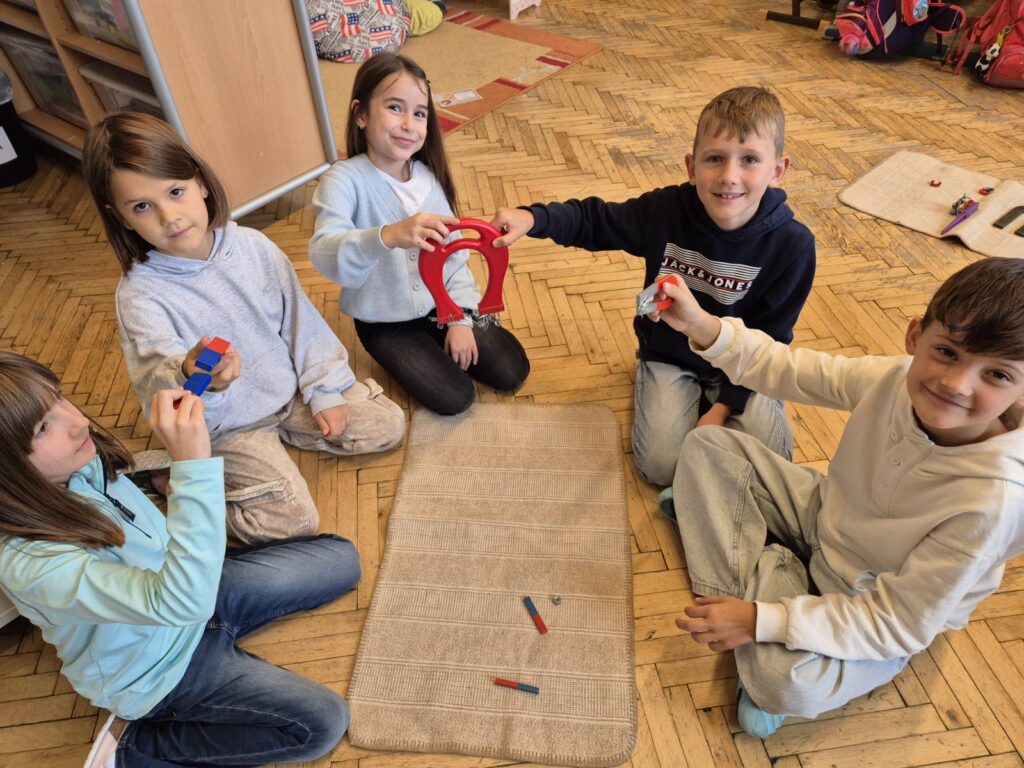 Gleich magnetisch oder unterschiedlich stark?   Mit Magneten lernen wir, wie Kräfte wirken und testen die Anziehung mit kleinen Gegenständen im Schulhaus.