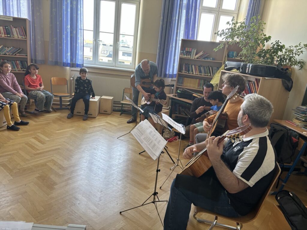 Gitarrenkonzert / VS-Archiv-23/24 / By Ulrike Haider Gemeinsam erlebten wir ein wunderschön abwechslungsreiches Gitarrenkonzert. Die Kinder konnten das Instrument Gitarre auf eine besondere Art entdecken und miterleben wie spannend Musik sein kann. Weitere Fotos finden Sie unter folgendem Link.Das Passwort erhalten Sie bei der Klassenlehrerin.