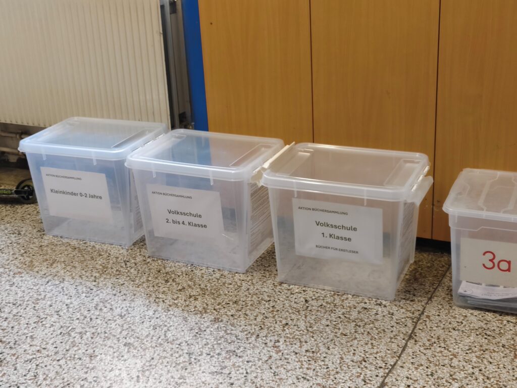 • Volksschule 1. Klasse: In dieser Box sammeln wir Erstleserbücher für die jüngeren Schülerinnen und Schüler.