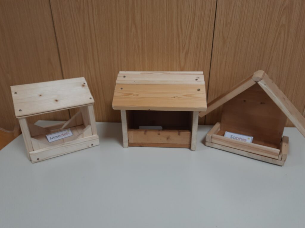 Selbstgebastelte Vogelhäuser entstanden im Werkunterricht der Sonnenklasse. Diese großartigen Meisterwerke werden nun vielen Vögeln einen Unterschlupf bieten.