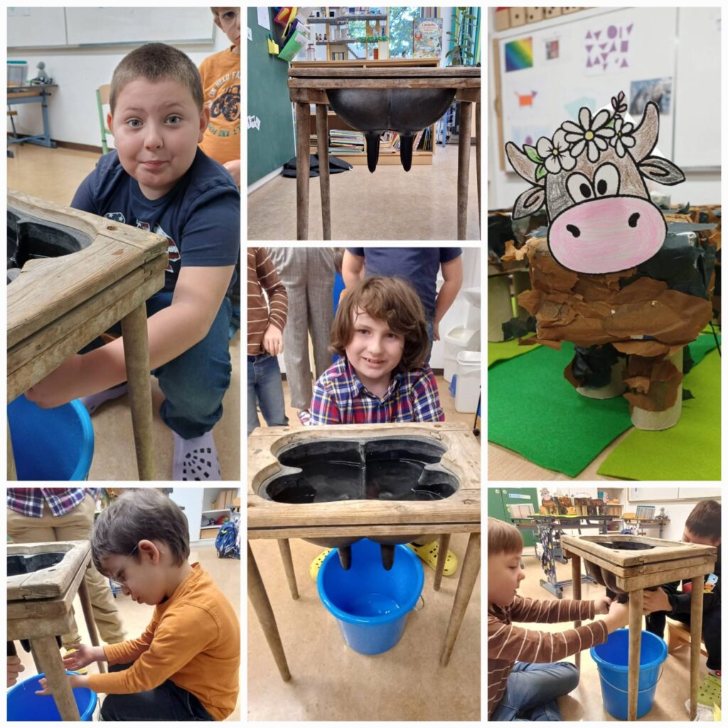 Besonders aufregend war das „Melken“ – ganz praktisch durften die Schülerinnen und Schüler selbst ausprobieren, wie es ist, eine Kuh zu melken.