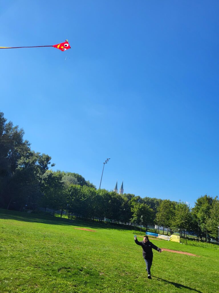 Im Rahmen des Atelierunterrichts unternahmen Frau Dir. Haider und Herr Kapral mit den Kindern einen besonderen Ausflug: Gemeinsam machten wir uns auf den Weg, um bei herrlichem Wetter Drachensteigen zu lassen.