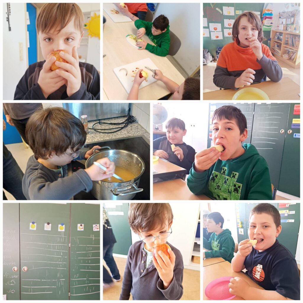 Die Robben Klasse durfte acht verschiedene Apfelsorten verkosten und diese nach Geschmack und Geruch bewerten.