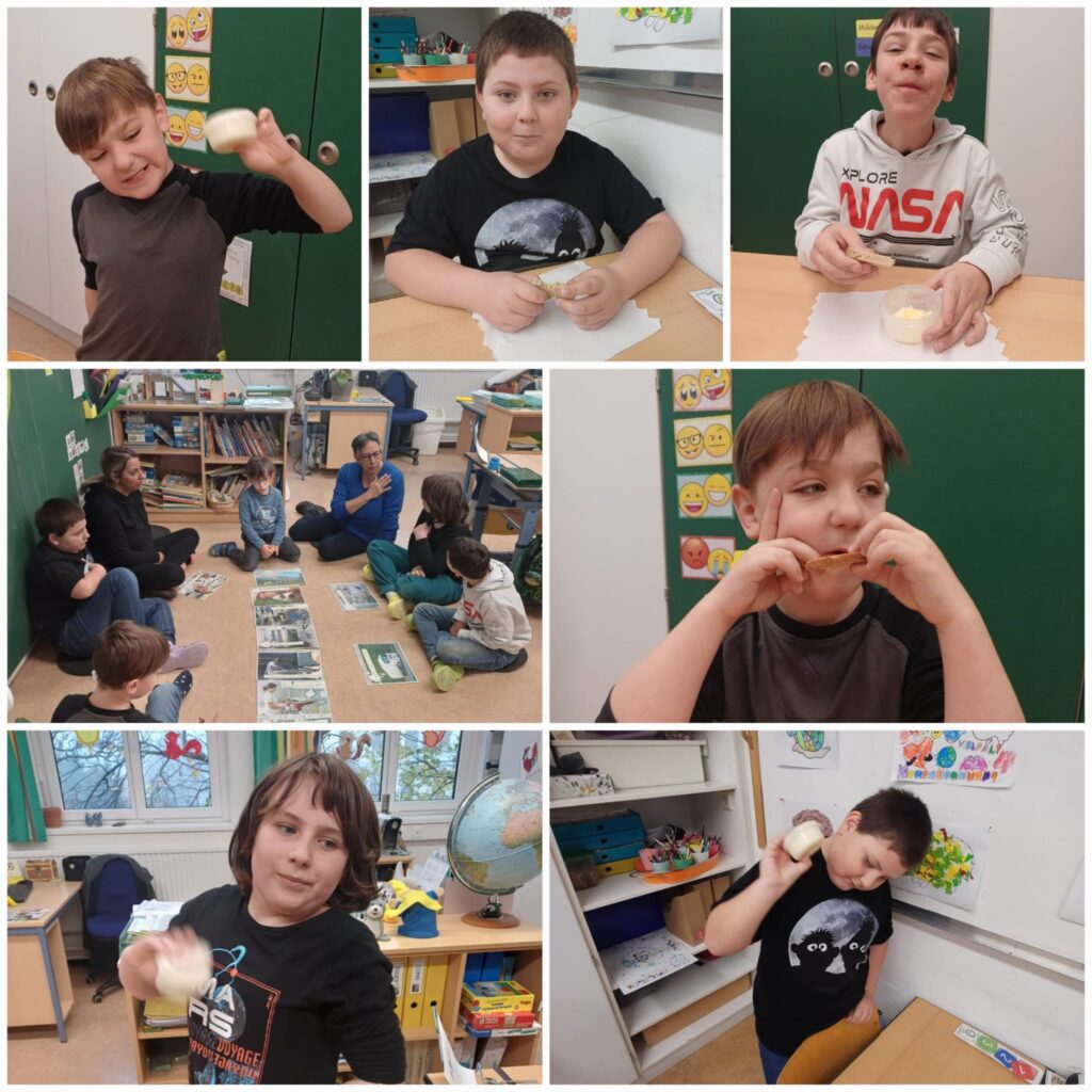 Aus Schlagobers wurde mit viel Geduld und Muskelkraft echte Butter hergestellt. Natürlich durfte auch gekostet werden – und alle waren stolz auf ihr selbstgemachtes Ergebnis!