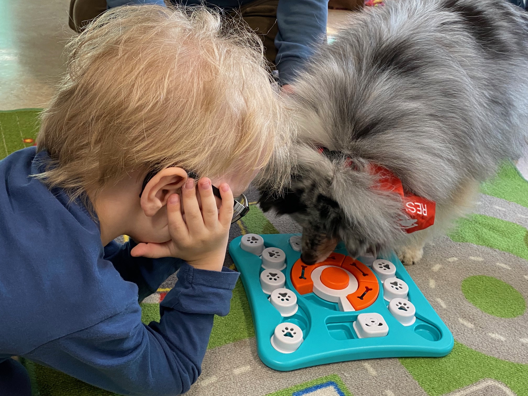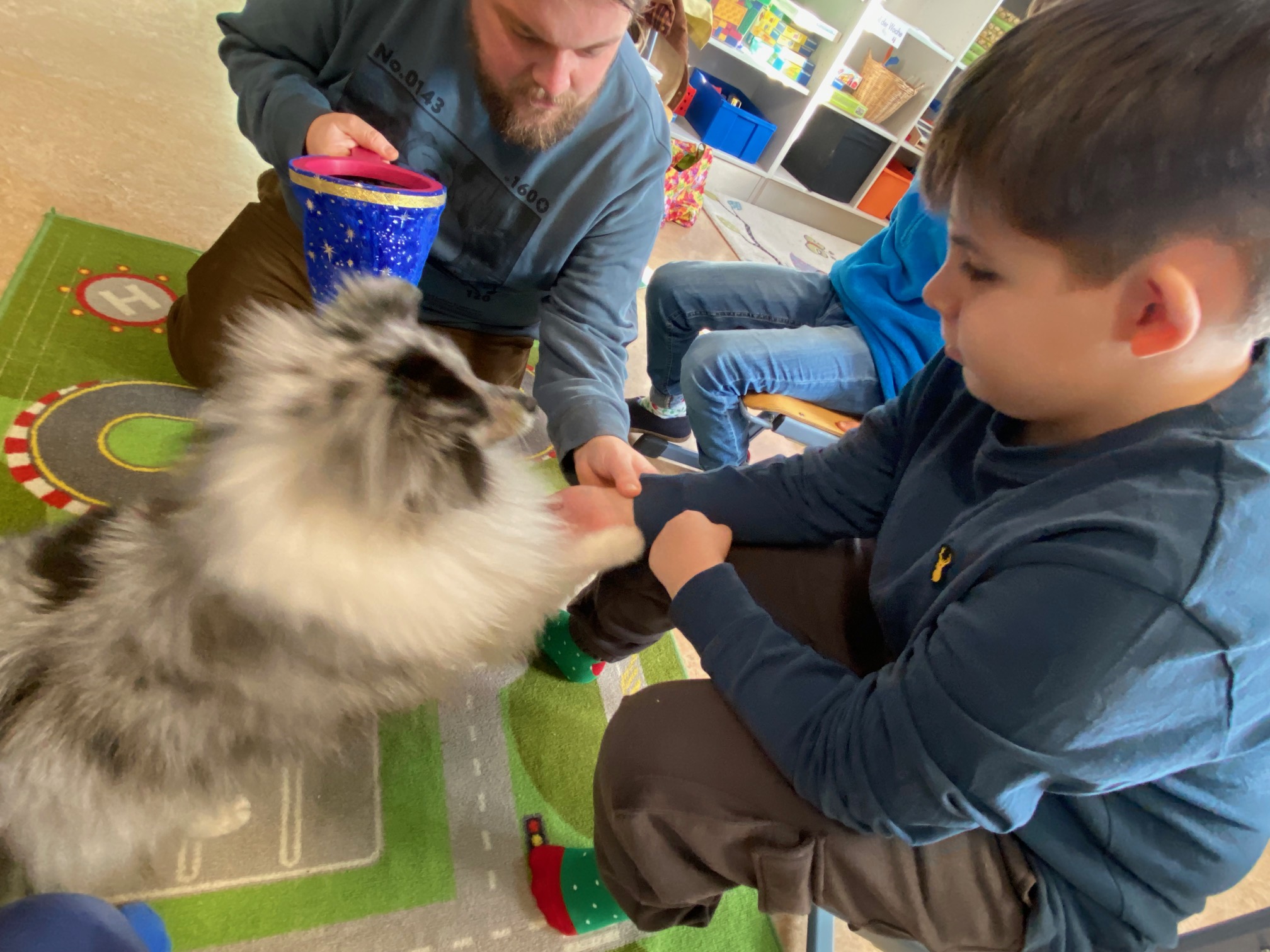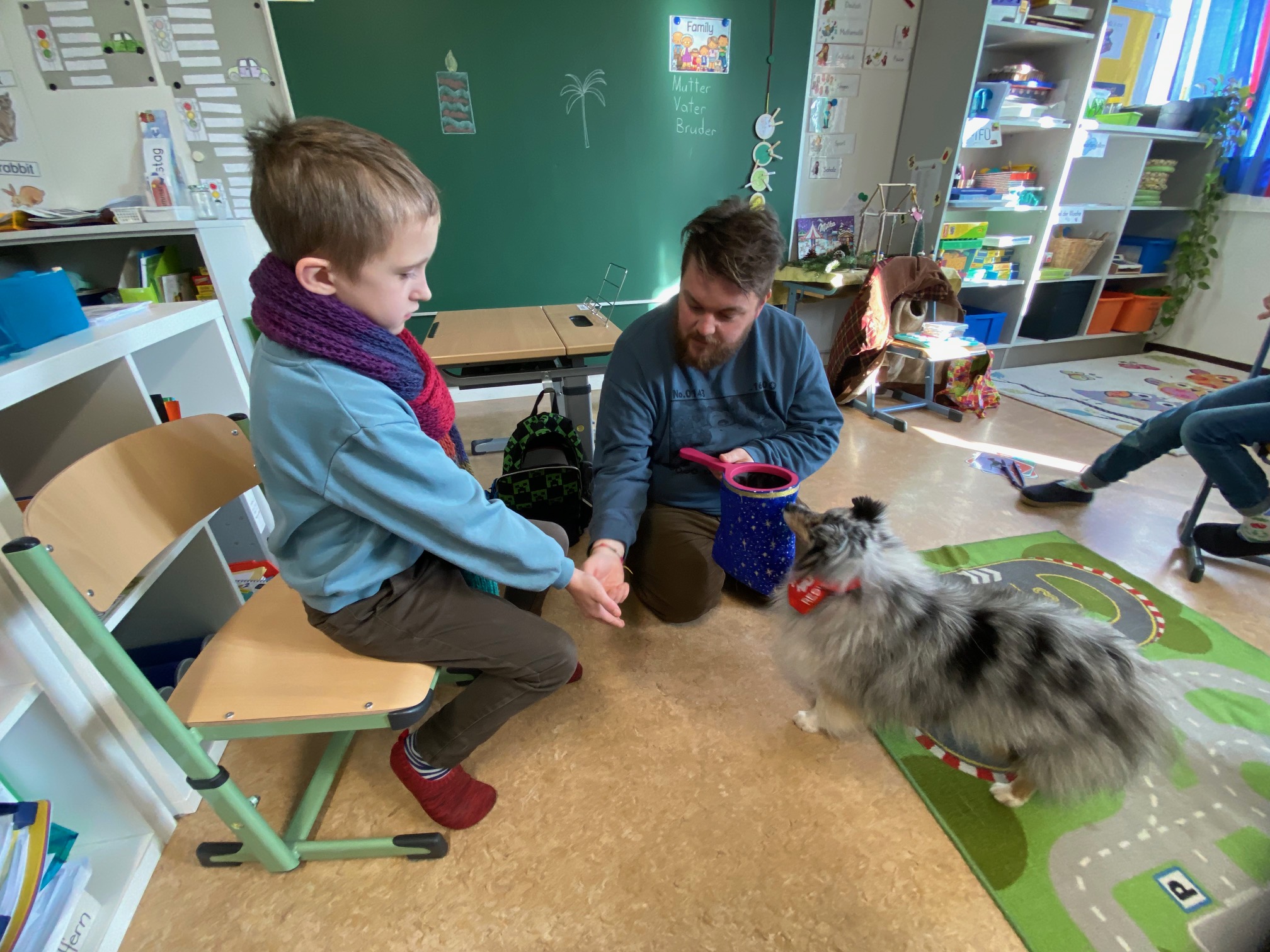 Große Freude in der ASO 3: Therapiehund Resi war gemeinsam mit ihrem Herrchen Benni zu Besuch.