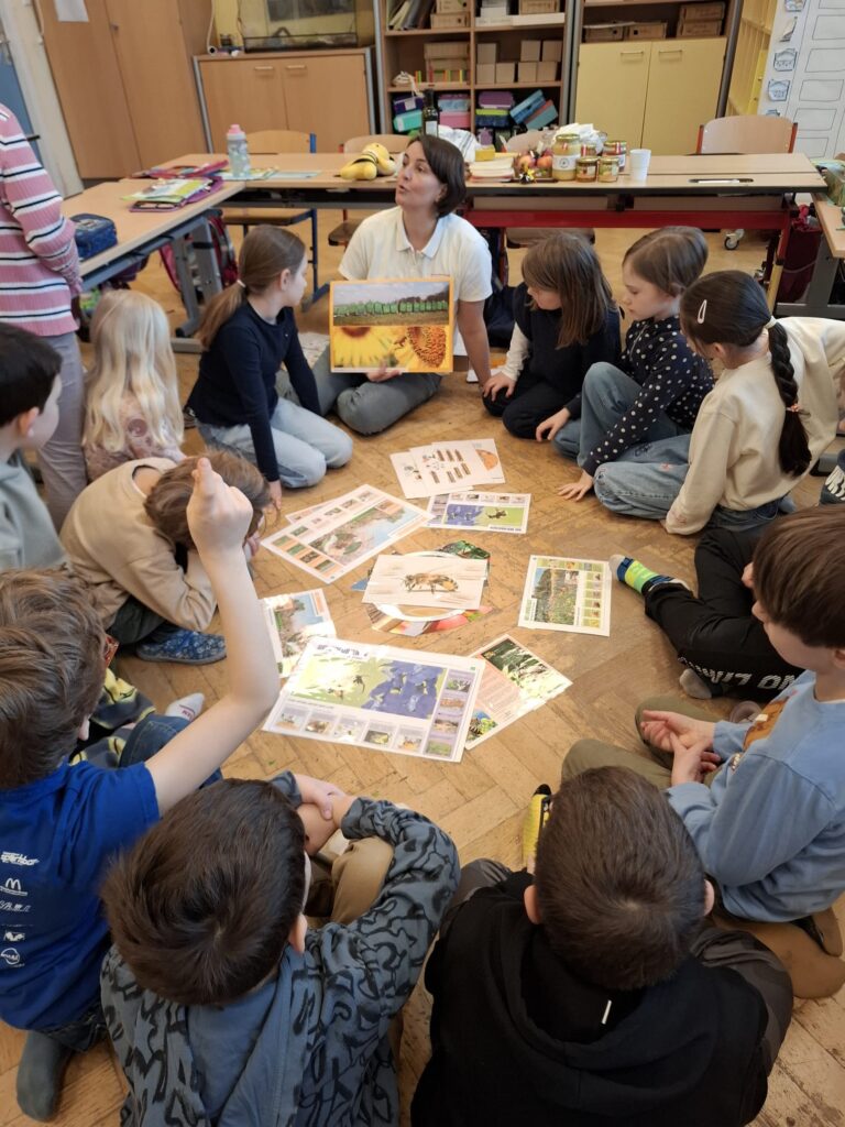Besonders interessant war es zu erfahren, wie Honig entsteht und welche Rolle die Bienen bei der Bestäubung von Blumen und Obstbäumen spielen. Ein Highlight war das Betrachten von echten Bienenwaben sowie das Probieren von köstlichem Honig.